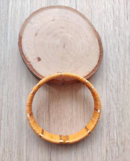 Material: 24k gold plated bronze with natural fiber threading from werregue palm.