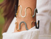 Material: 24k gold plated bronze with natural fiber threading from werregue palm.