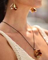 Material: 24k gold plated bronze with natural fiber threading from werregue palm.