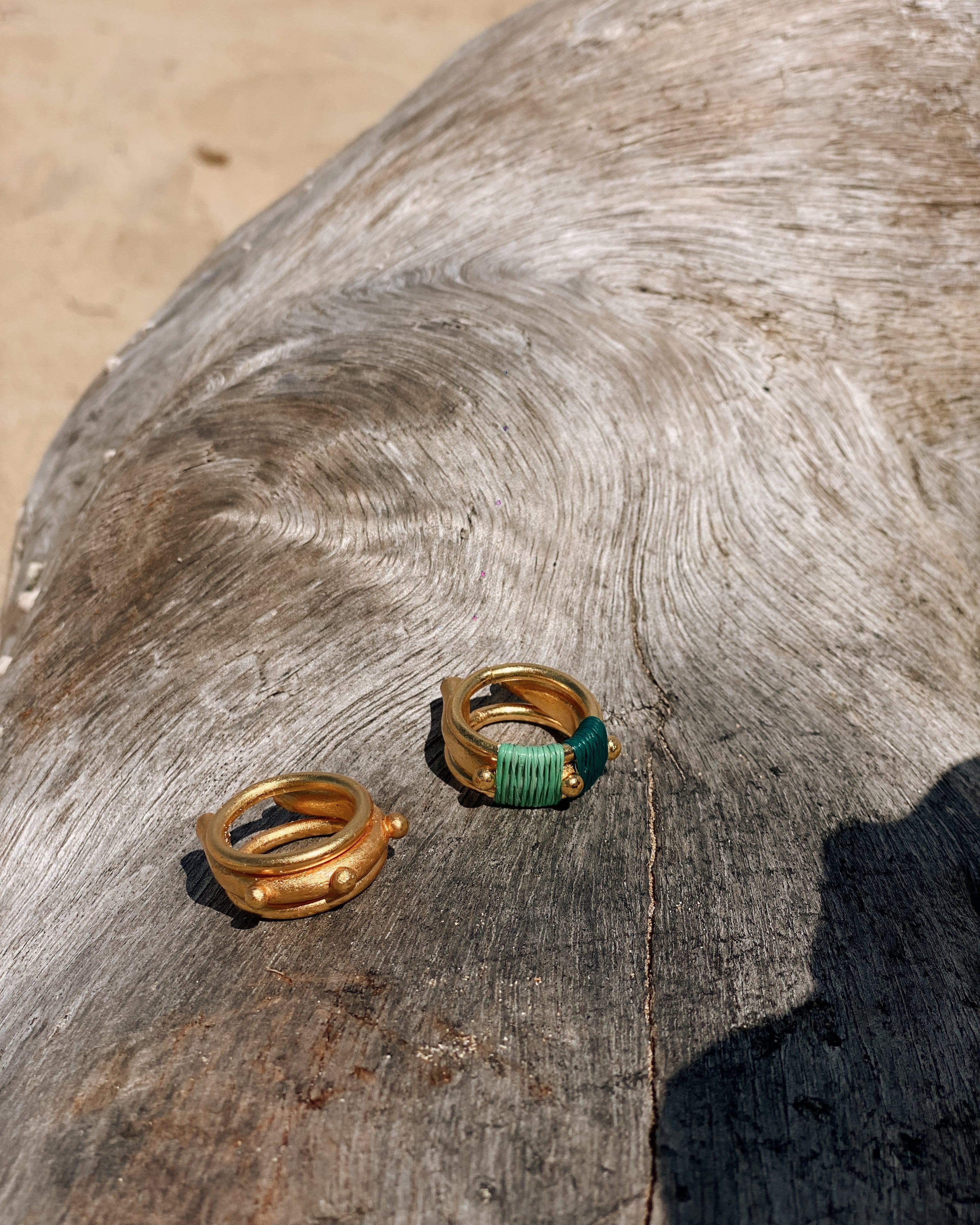Material: 24k gold plated bronze with natural fiber threading from werregue palm.